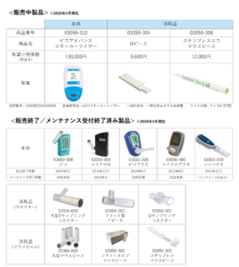 A. 現在メンテナンス受付可能な製品は「ピコアドバンススモーカーライザー」のみです。メンテナンス/修理のご依頼は、必ず医療機器卸業者様を通じてお願いいたします。依頼方法は、保守・サービスページより「定期校正/修理依頼書」をダウンロードし、FAXでご依頼ください。